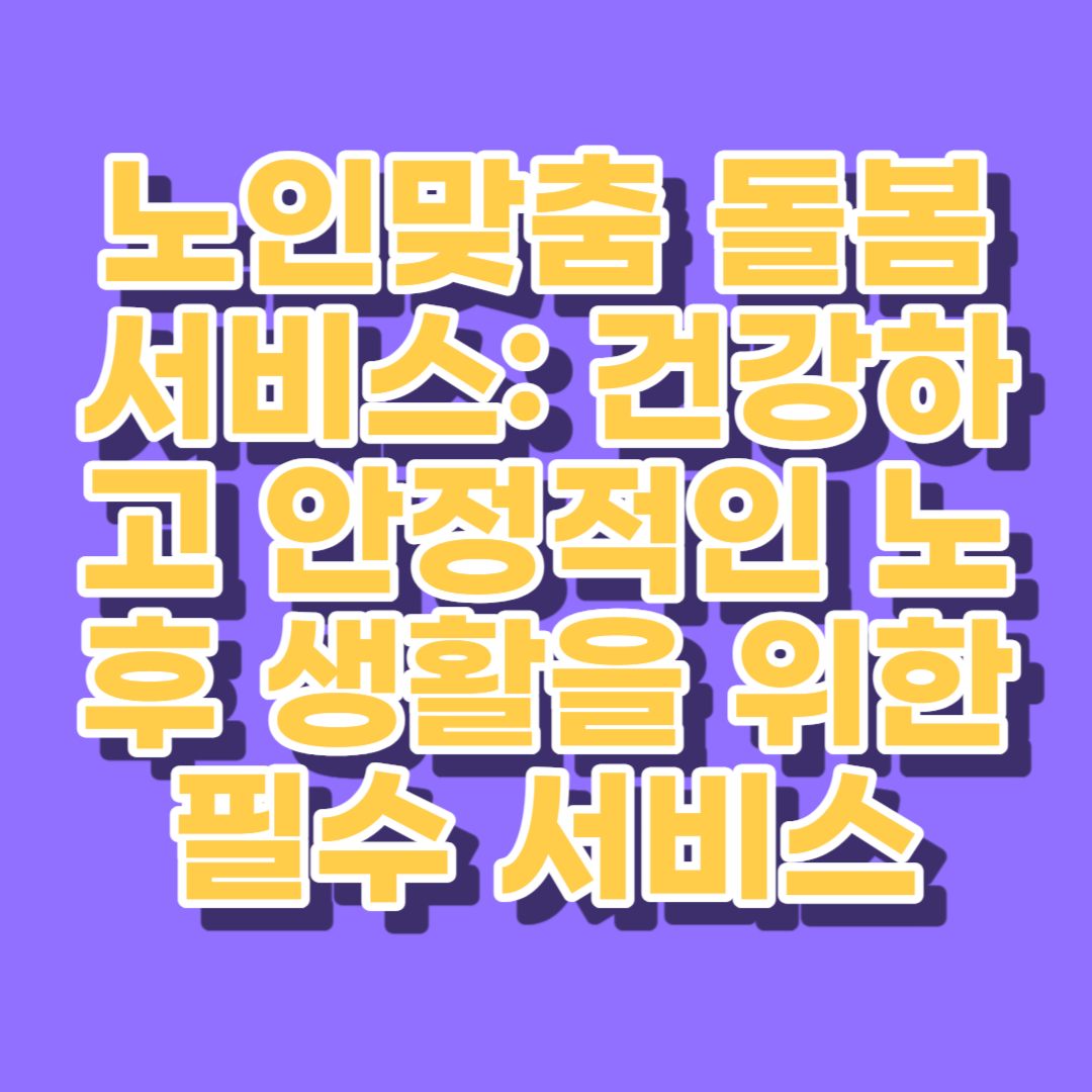 노인맞춤 돌봄 서비스는 노인들의 건강하고 안정적인 노후 생활을 위한 필수 서비스입니다. 노인들은 이러한 서비스를 활용하여 더 나은 삶을 영위할 수 있으며, 필요한 경우에는 적절하게 신청하여 도움을 받을 수 있도록 하세요.
